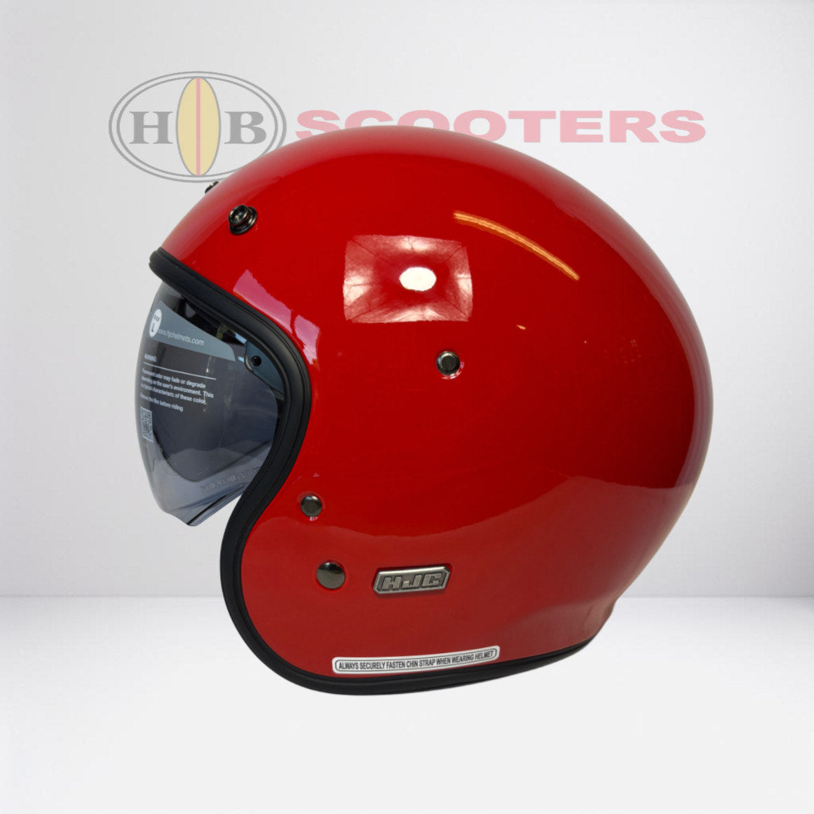 The HJC V31 is a retro- style open-face motorcycle helmet known for its lightweight design and comfortable fit. It features a fiberglass composite shell. The helmet includes, sun visor, classic, lightweight double D-ring chinstrap, pre-installed speaker pockets and designed to accommodate a 3-snap visor for riders who prefer additional face coverage.